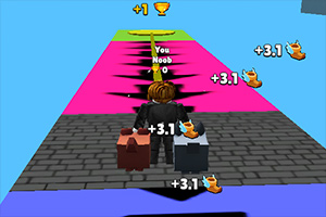 游戏你可以通过不断点击鼠标来增加主角的奔跑速度,然后让他参加各个赛道的奔跑挑战并取得冠军,你还可以用奖杯来购买其他增加效果的道具物品,快来试试吧。